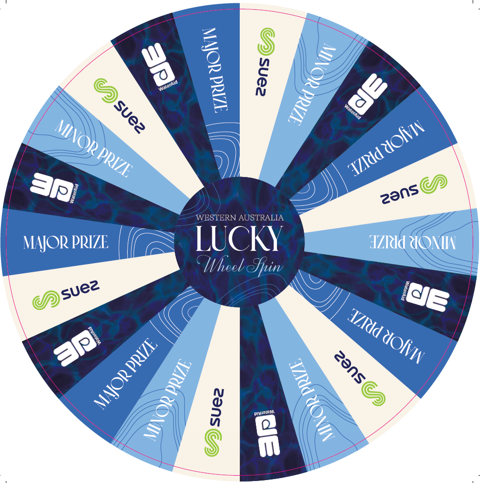 - Your logo displayed in the WaterAid presentation slides during the Lucky Wheel Spin